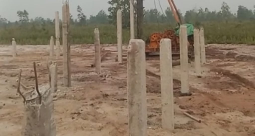 Lapisan tanah khusus sampit di Kalimantan Tengah di rata - rata lembek atau gambut. Tiang pancang membantu mencapai kelapisan yang lebih dalam dan kuat.